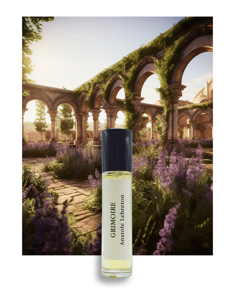 Representing the herb garden of a monastery, basil and lavender combine their aromatic freshness. Incense and moss depict the sacred, the elevation, the tranquility of the crypt and the minerality of the centuries-old walls, while patchouli and cedar are the books, paper witnesses and repositories of immemorial wisdom