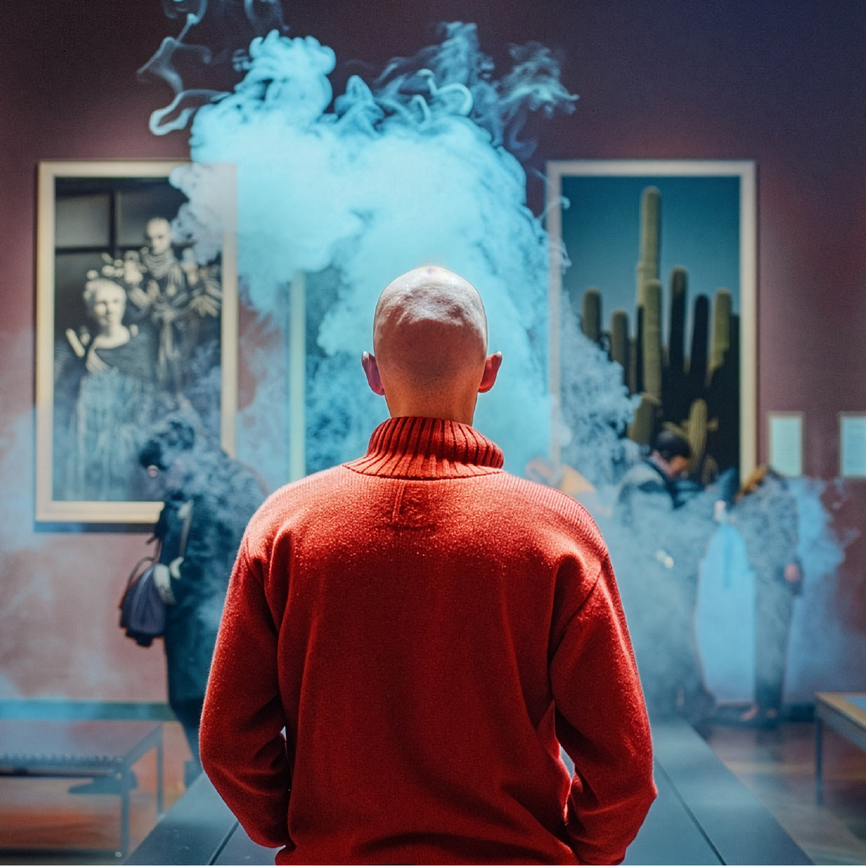 Après quelques minutes d’immersion totale, émergeant de sa transe créative, il remarque des employés de sécurité s’agiter et rechercher la source de cette forte odeur de brûlé. Il comprend soudain que c’est son satané fumet de fenugrec qui diffuse à mort et cause ce vent de panique et l’a transformé en colis odorant suspect.
